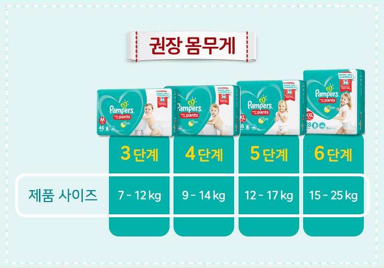 권장 몸무게 3단계부터 6단계까지 확인하세요.
