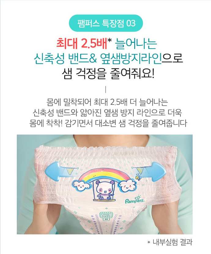 몸에 밀착되어 최대 2.5배 더 늘어나는 팸퍼스 기저귀