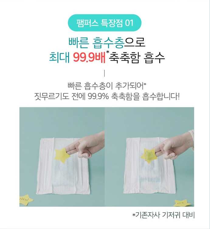 기존 자사 기저귀와도 비교해도 흡수력이 참 좋습니다.