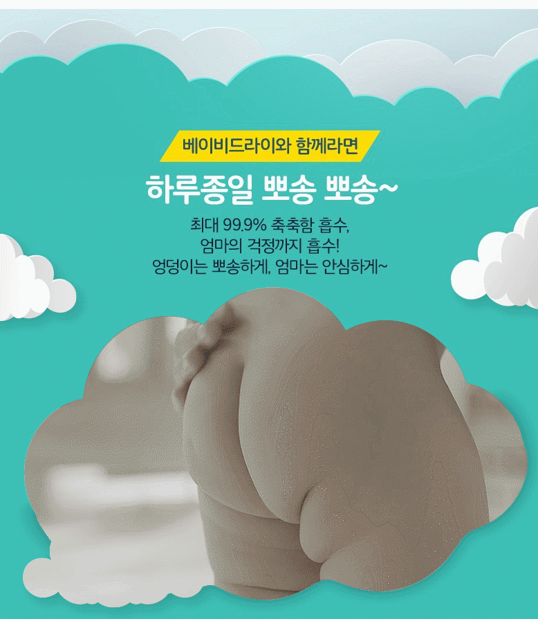 흡수력 최대 1.5배로 우리 아이의 뽀송한 엉덩이를