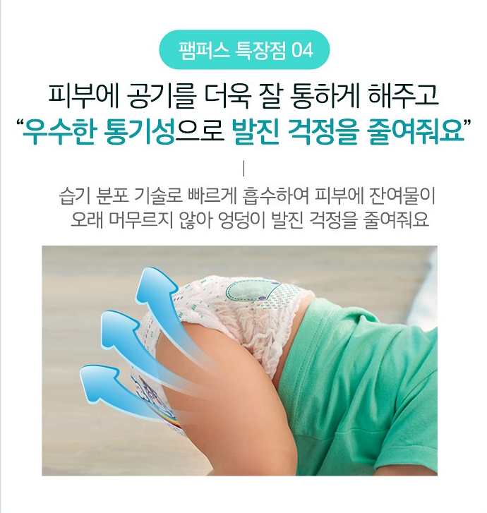 피부에 공기를 더욱 잘 통하게 해주는 팸퍼스 기저귀